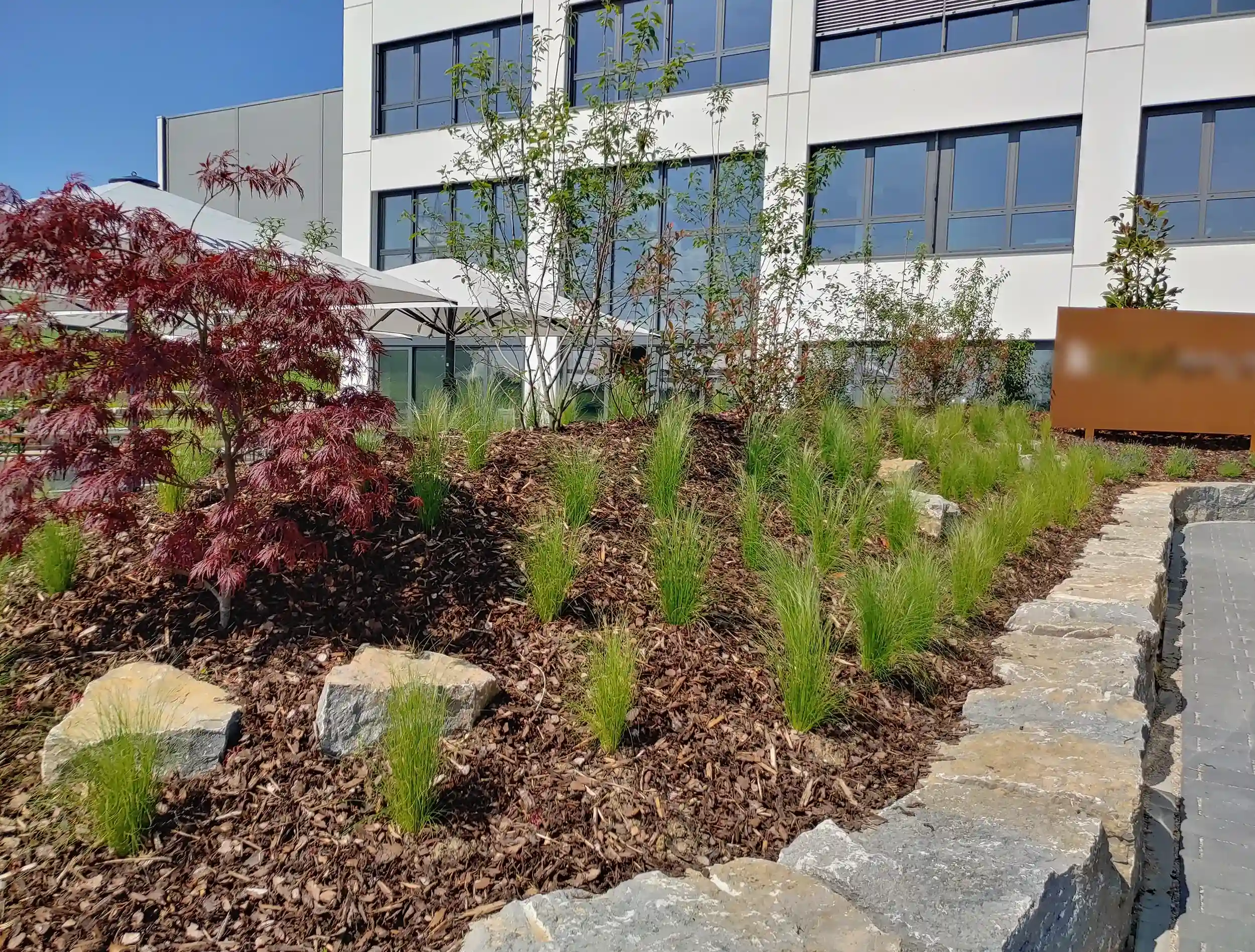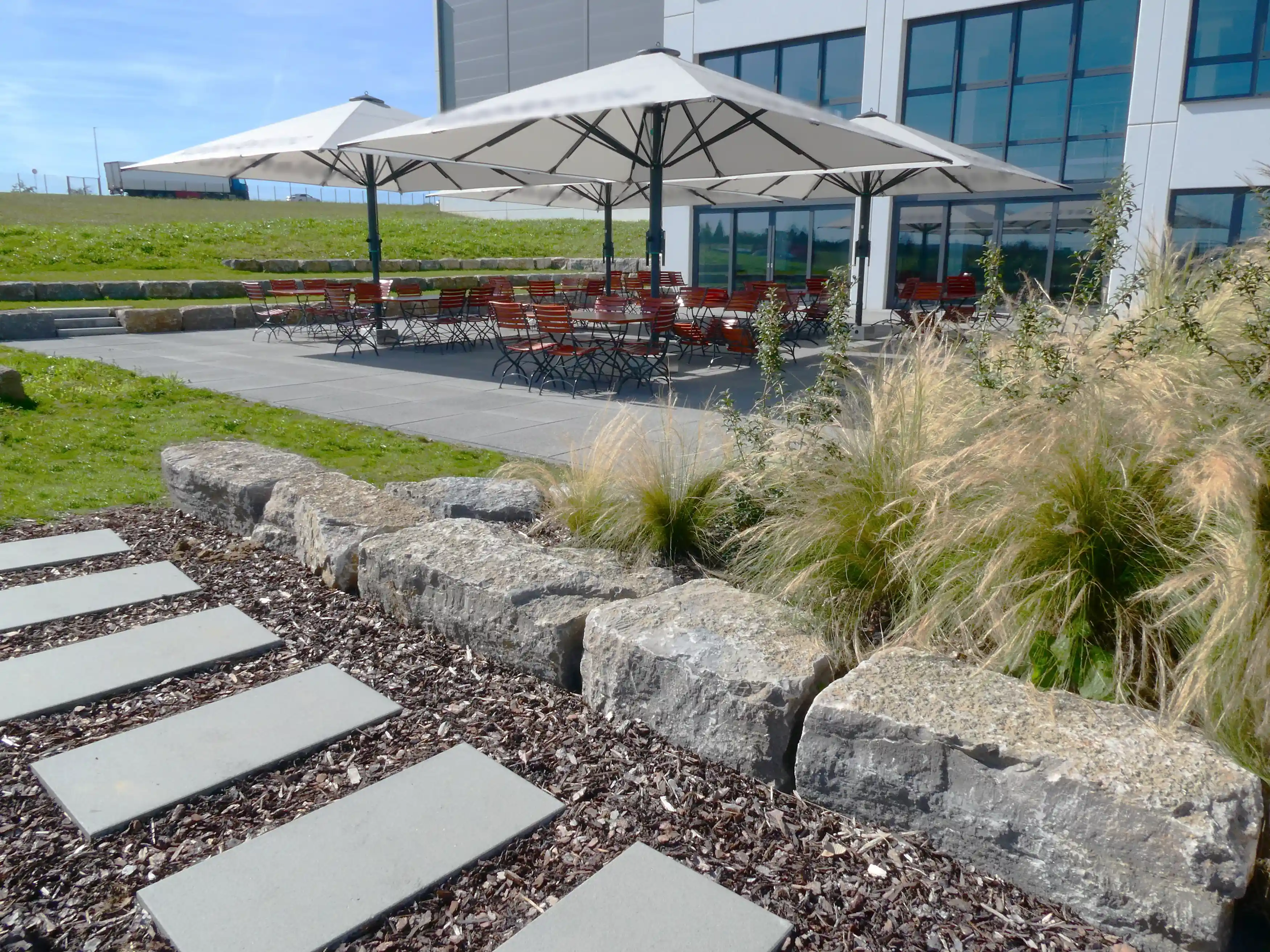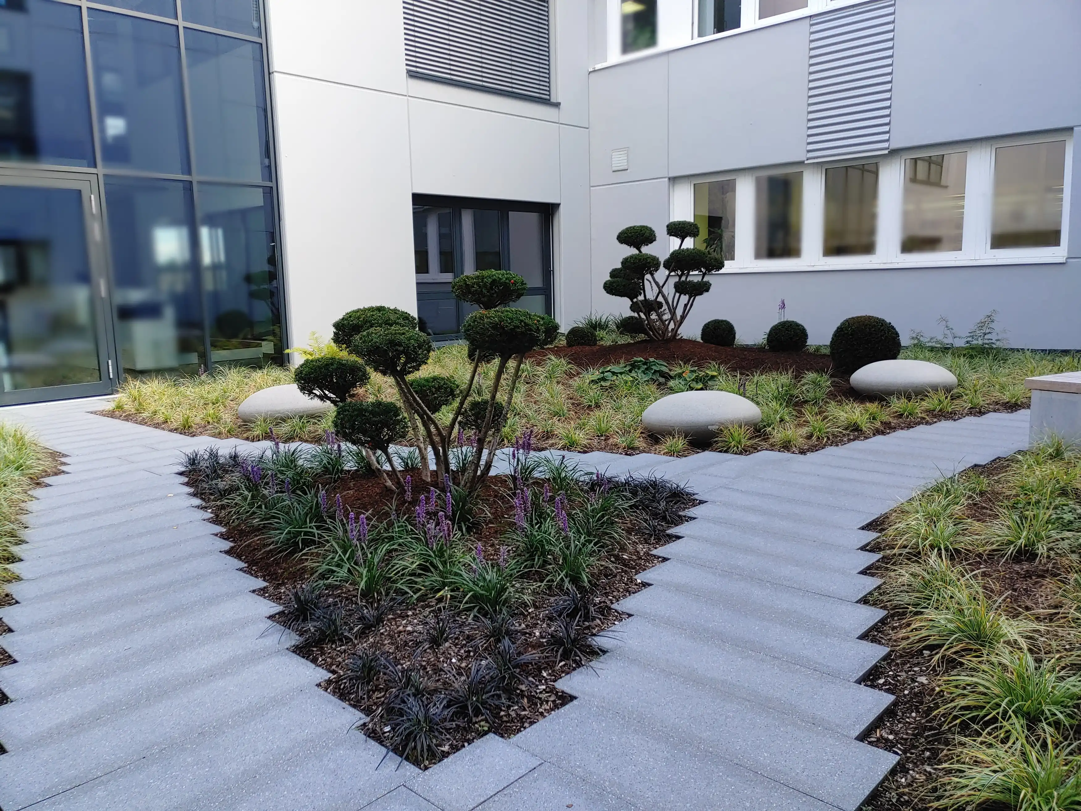 Unternehmen zeigen sich in der Öffentlichkeit – unter anderem mit dem Erscheinungsbild ihrer Außenanlage. Eine attraktive Außenanlage spiegelt nicht nur das Firmenniveau wider, es motiviert auch die Mitarbeiter.